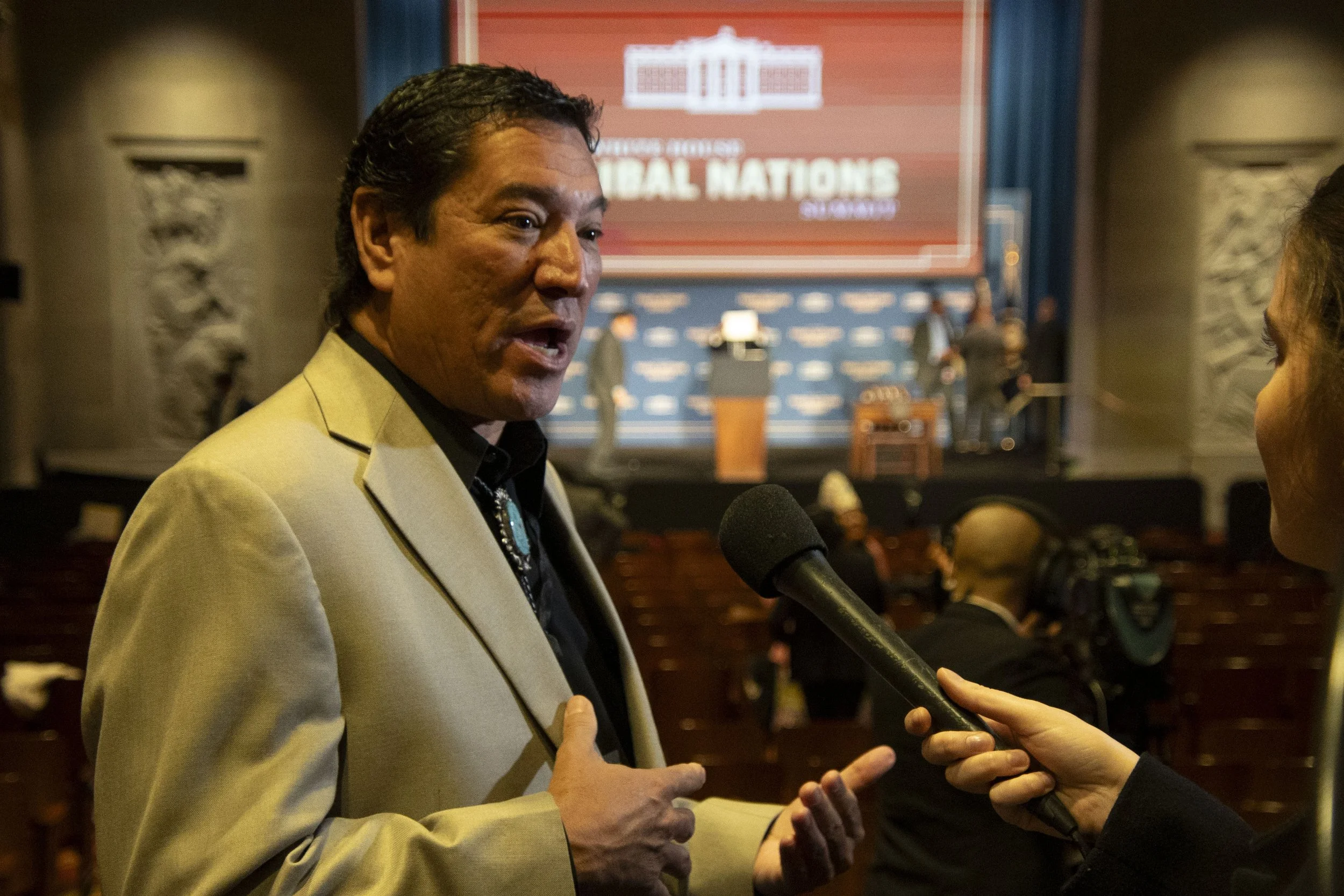 Gov. Reggie Wassana of the Cheyenne and Arapaho Tribes in Oklahoma spoke with Gaylord News before President Biden’s speech about the need for his administration to look at policies and regulations that make it hard for tribes to get funds for infrastructure improvements.